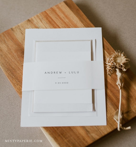 Minimalist Belly Band Printable Diy Modern Wedding Invitation Etsy